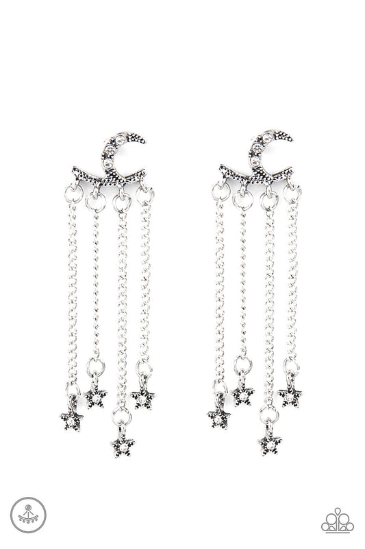 Cosmic Chandaliers - White and Silver Earrings - Paparazzi Accessories