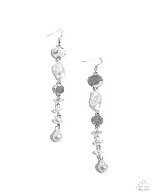 Cosmopolitan Chic - White and Silver Earrings - Paparazzi Accessories
