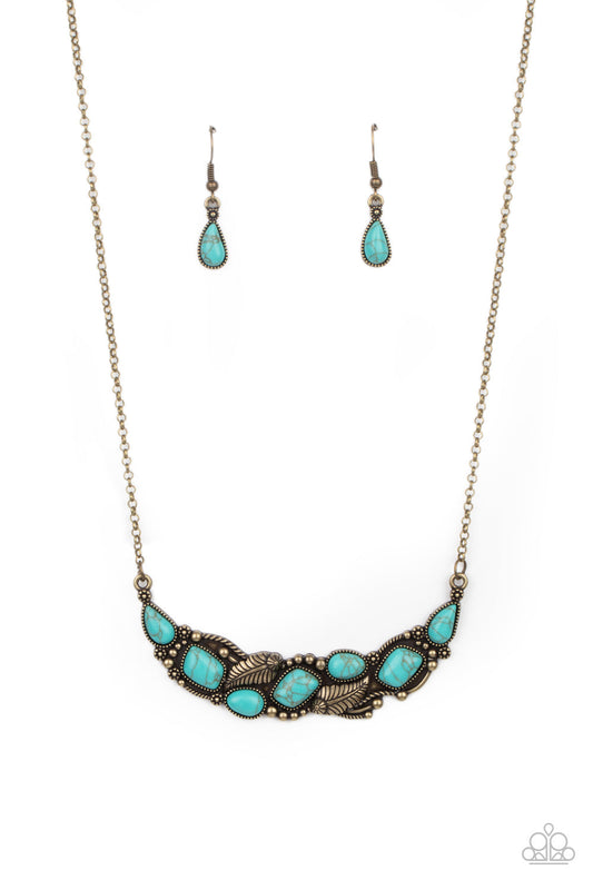 Cottage Garden - Brass and Turquoise Necklace - Paparazzi Accessories