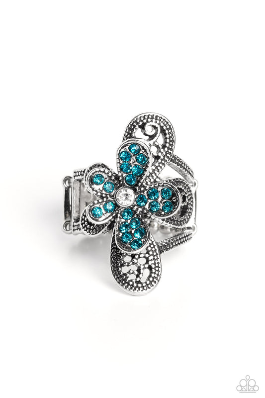 Garden View - Blue and Silver Floral Ring - Paparazzi Accessories
