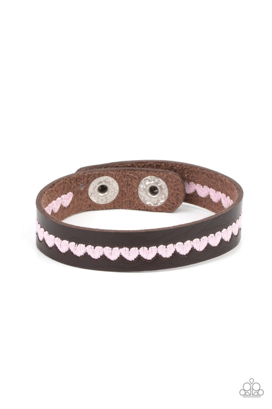 Made With Love - Pink Heart - Brown Leather - Snap Closure Bracelet