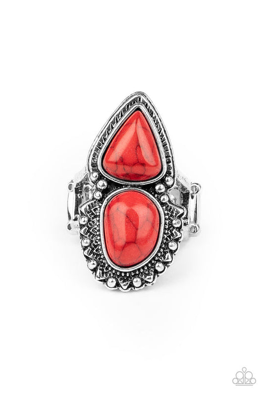 Mojave Mosaic - Red Stone and Silver Ring - Paparazzi Accessories
