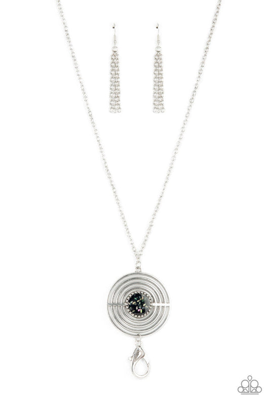 Targeted Tranquility - Black and Silver Lanyard Necklace - Paparazzi Accessories
