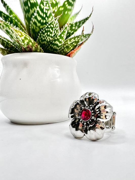 Bloom Bloom Pow - Pink Floral Ring - Paparazzi Accessories